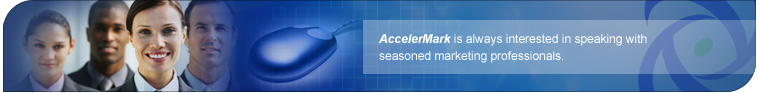 In order to service our growing client demands, AccelerMark is always interested in speaking with seasoned marketing professionals. We seek individuals with the following qualities: - Proven track record of success and achievement (academically and professionally).