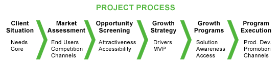 AccelerMark's goal is to develop and implement actionable strategies that deliver profitable growth. Toward that end, we work very closely with clients to understand their core strengths and needs and then develop a strategy from the marketplace in to maximize the chances for success. A high-level overview of our process is shown in the graphic below:  We begin with the client situation to understand their needs and core competencies. We listen well but often find that we help in defining the key needs based on assessing the situation and key questions that must be addressed. The next stage, the market assessment, often involves some primary end-user research combined with secondary research on the competition, channel options, potential partners, and other key elements of the market structure. Based on this market assessment, we can then filter the various potential strategies and market segments based on their fit with the client's core strengths, market demand, competition, and the ability to profitably intercept the opportunity. From this, we develop the strategy for growth based upon a Market Value Proposition (MVP) that aligns with the key market drivers. The strategy drives the specific programs for growth – such as changes to the solution, the plan to drive awareness of the solution, and the approach to increase access to the market to intercept opportunity. Finally, we help clients to execute the recommended growth programs. Our ultimate goal is achieved at this last stage, by driving profitable growth. We work side-by-side with our clients in this effort. Since we have our eyes set on results from the start, we develop strategies that are realistic and can be implemented. This is what we mean when we speak of actionable strategies. Of course, we customize the above approach based on the unique client circumstances and market dynamics, but this framework provides guidance for how we develop a project and work plan. |